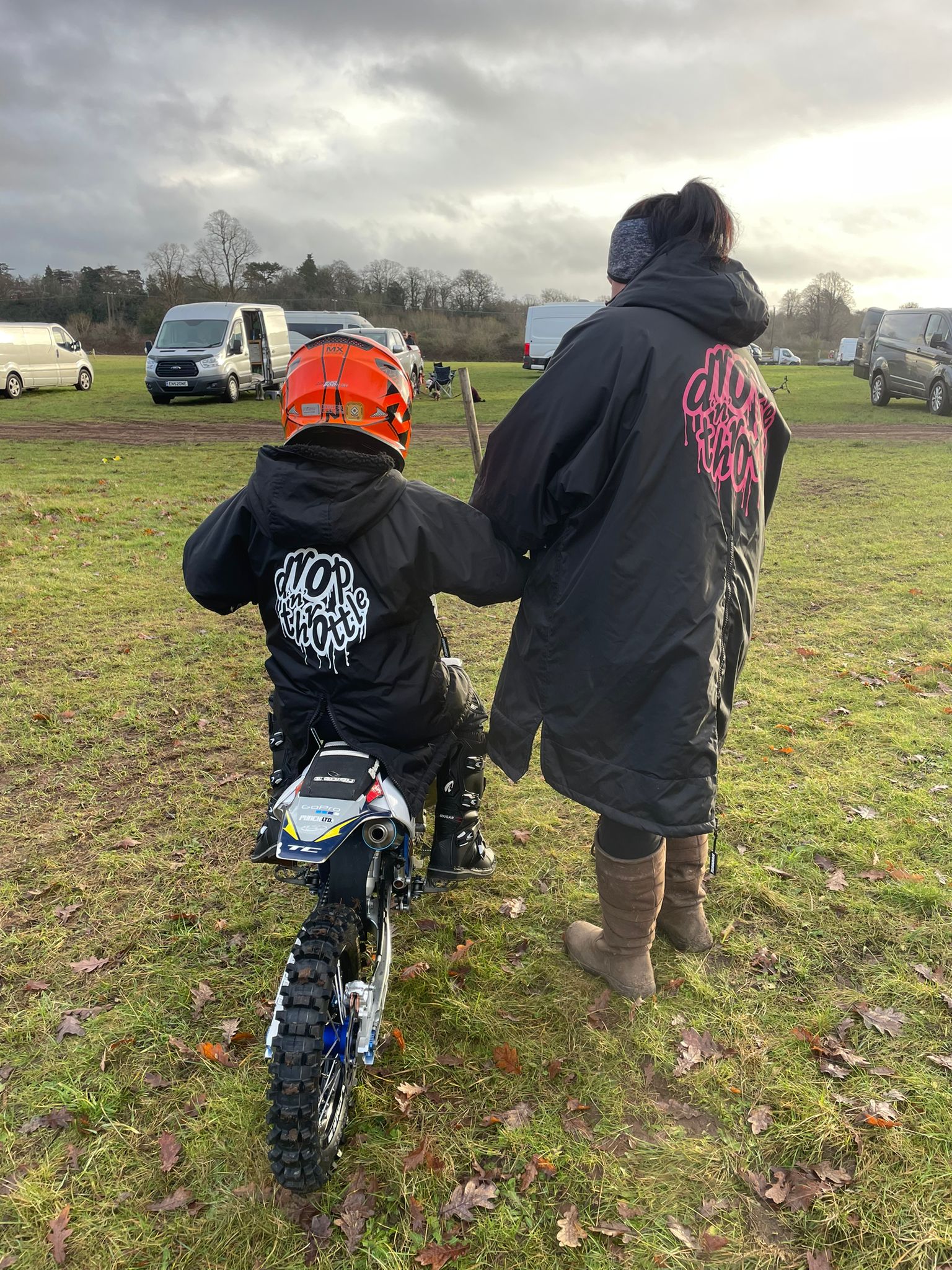 Keep your little Rider's warm, dry, and ready for action with the Kids Dryrobe — the ultimate all-weather changing robe. Designed with the same high-performance materials as our adult version, it’s perfect for winter moto’s in the paddock, on the start gate , swimming, surfing, camping, or any outdoor adventure.